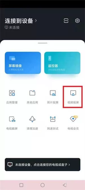 1、打开手机上的小米电视助手应用,定位至视频投屏功能入口。