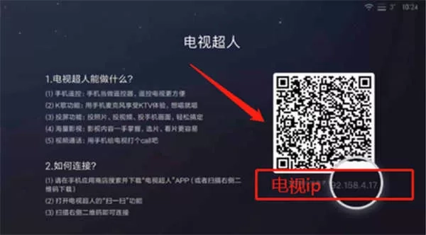 5、电视端的二维码和IP地址信息可以在“电视超人”应用中获取。