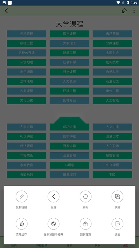 打开大学资源网,进入首页后,你可以看到各个年级、不同类型的课程,还有精品推荐课程供你选择。