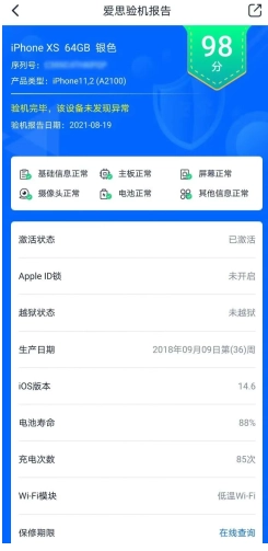 购买二手机时,连接设备后验机报告能瞬间生成,电池寿命、充电次数、是否越狱等信息都清晰呈现。