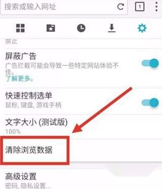 点击打开浏览器,接着在设置页面里找到清除浏览数据的选项,找到后点击进入该功能页面。