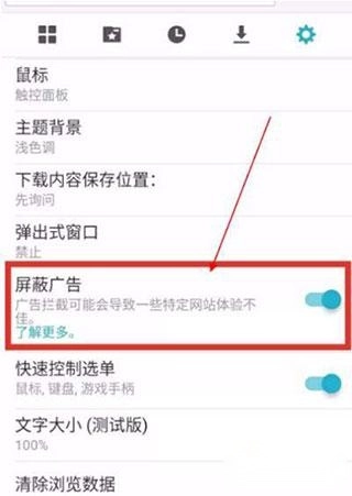也有可能是广告的问题,我们可以先找到界面里的设置选项,接着就能看到一个关于屏蔽广告的设置,点击将其关闭就可以了。