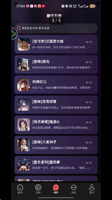 进入首页后,能看到各类不同分类的角色可供使用,此外还有商城、创作等实用功能。