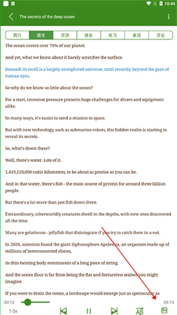 在熟悉文章内容后,你可以使用评测功能生成自己的英语朗读音频——也就是自己读、自己听,这样能更清晰地发现发音方面的问题。