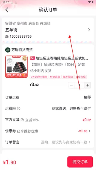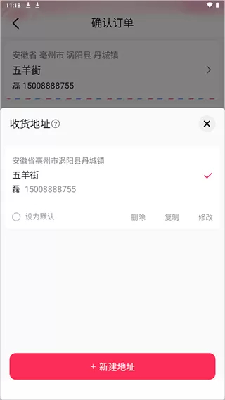 1、用户可以在订单提交确认页面下点击自己之前的收货地址