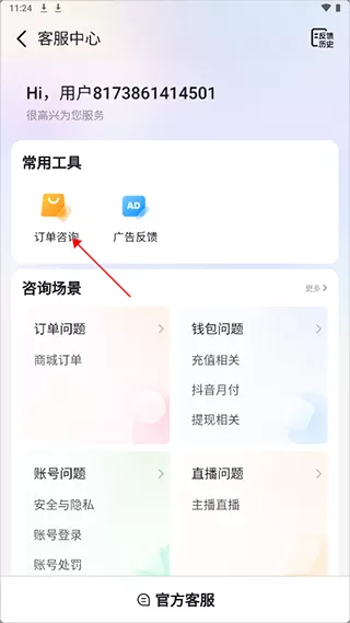 1、用户可以在抖音商城版【我的】页面下点击上面的类似“三”的图标,然后点击【我的客服】