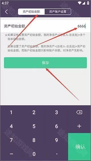 3、设定资产初始金额,填入数字后,点击【保存】就行。