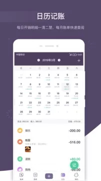 3.一键记账,记账就这么简单,有多种科目分类,让您的账单简单明了;
