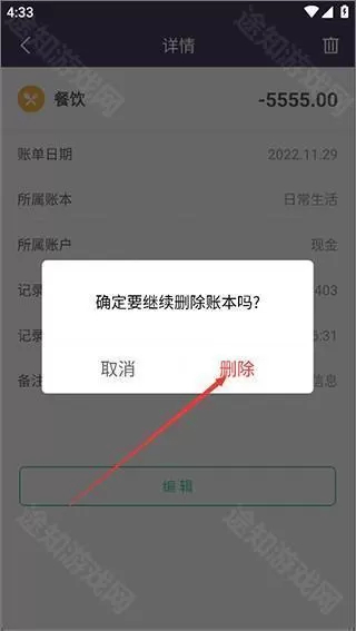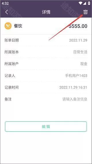 2、点击查看账单详情,点击页面右上角的删除图标;