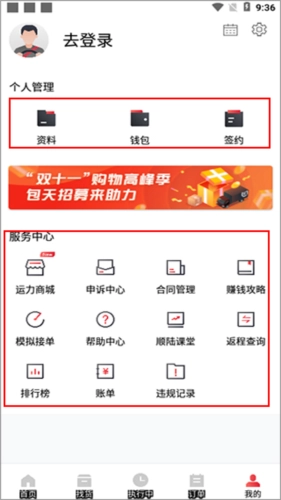 用户可在“我的信息”中查看基本资料,该板块还涵盖了软件的服务中心功能。