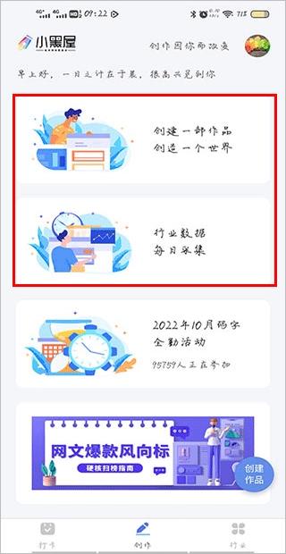 登录完成后,我们可以在打卡页面进入当月最新的码字全勤活动,给自己设定一个小目标,每日坚持创作打卡,铸就辉煌。
