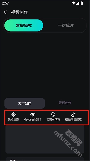 布可凡还提供了热点追踪、deepseek创作、文案AI改写以及视频内容提取功能,选择你需要的功能就能开始创作,在文字框输入主题和创作方向,点击开始生成就能在短短几分钟内完成一段短视频。它的使用方法相当之简单,不管是专业人士还是新手都能快速上手操作!