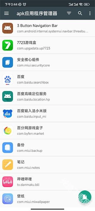 打开apk应用程序管理器后,在首页界面就能查看手机上已安装的所有应用程序。
