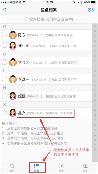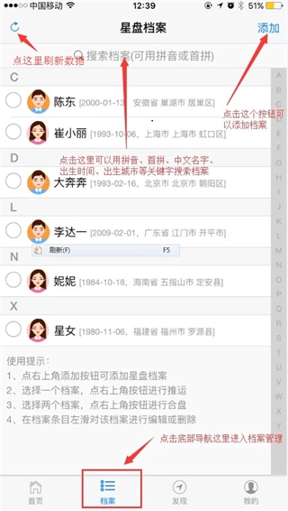 注册成为爱星盘用户后,就能保存自己的星盘档案,便于随时进行合盘分析和推运操作。