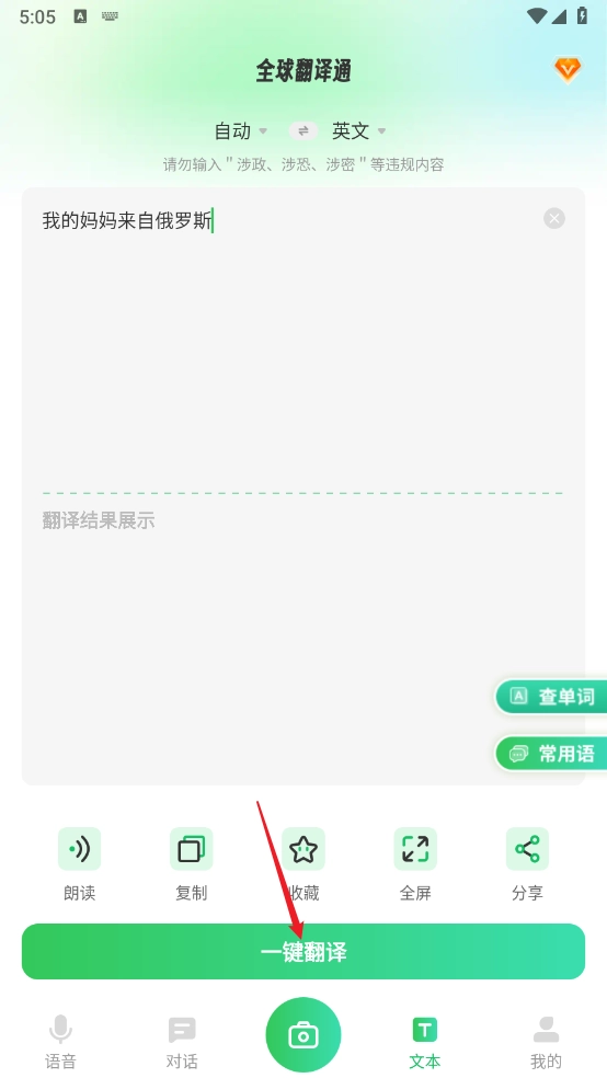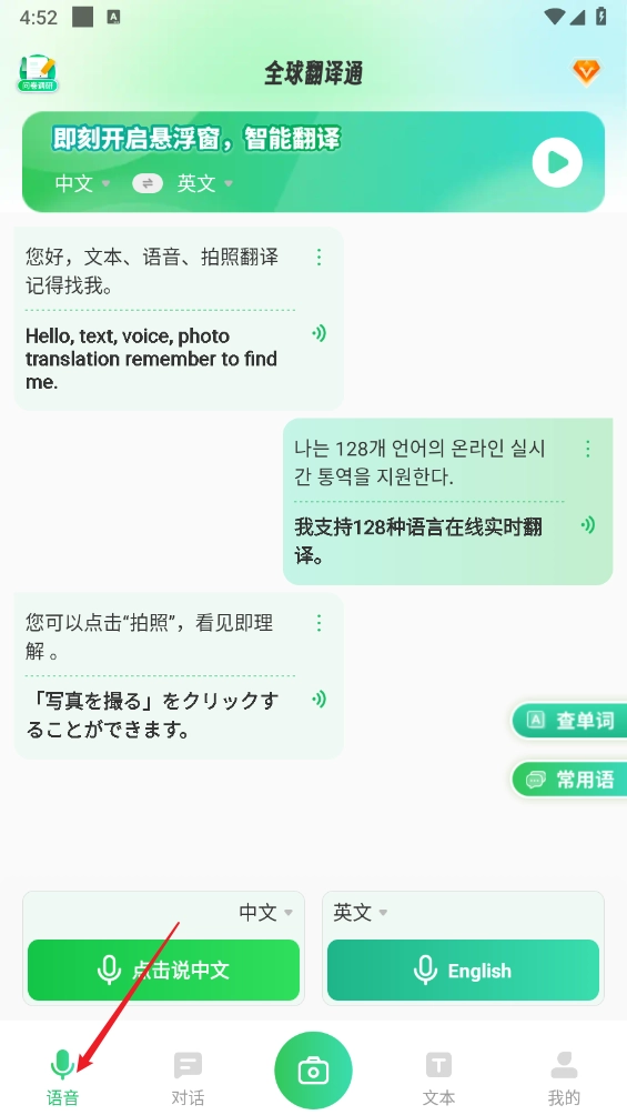 精准识别您的语音并迅速转化为文字,翻译结果精准高效,同时支持直接朗读译文。