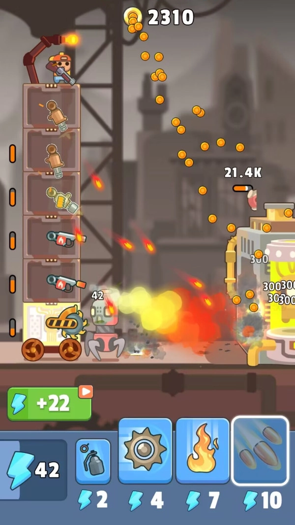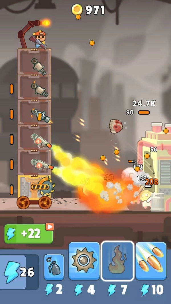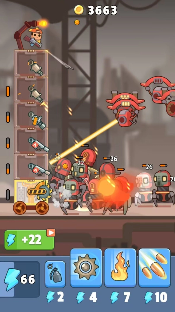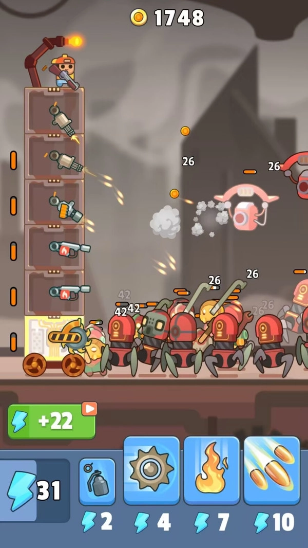 查看进度与金币:画面上方能看到当前关卡的推进情况以及持有的金币数量,金币可用来解锁武器和增强单位的输出能力。