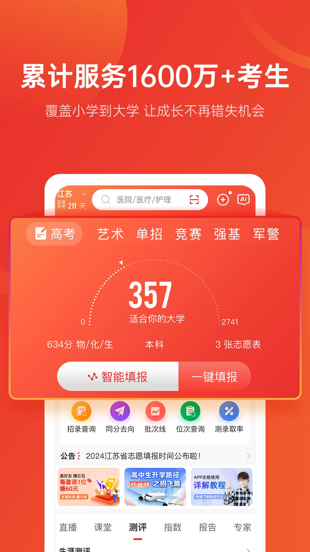 找大学、查专业:当年招生计划、历年院校分数线、专业分数线一手掌握;专业介绍、开设院校、就业前景、薪酬分析报告一站式查询