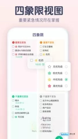 2、自由排序,按状态或时间进行排序,满足各种时间任务管理的需求。