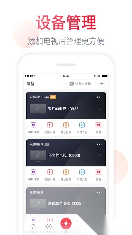 手机里存的照片和视频,轻轻点一下就能投到电视大屏幕上,和家人一起分享观看。