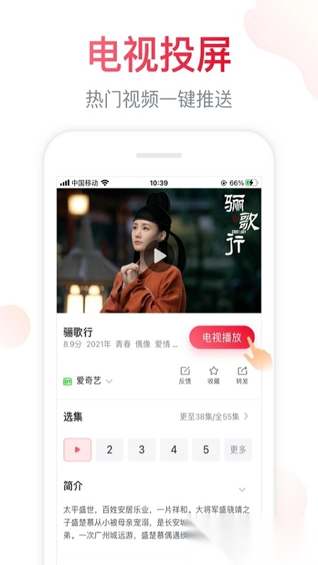 整合了华数、爱奇艺、腾讯等多家平台的视频资源,只需在手机上一键操作,就能将内容推送到电视播放,资源储备极为丰富。