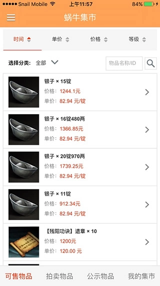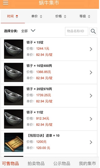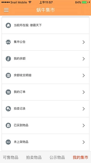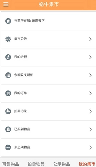 打开蜗牛集市,首页可看到游戏一些售卖的商品。