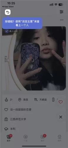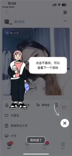 2、来到首页点击爱心表示愿意与对方匹配。