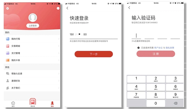 在本站常州地铁板块操作成功后,打开页面点击【我的】,接着选择【立即登录】,然后输入手机号并填写验证码完成登录。