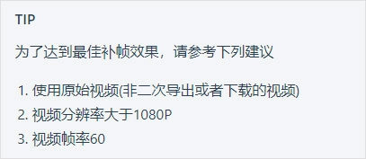 2、然后会看到如下的界面,这里可以选择用途为补帧或者运动模糊;