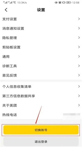 进入设置界面后,找到那个醒目的黄色【切换账号】按键并点击它。