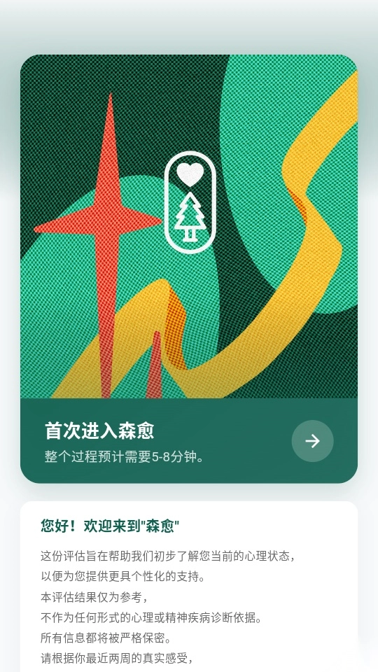 在首次进入森愈界面后,点击旁边的“向右箭头图标”按钮以继续下一步操作。