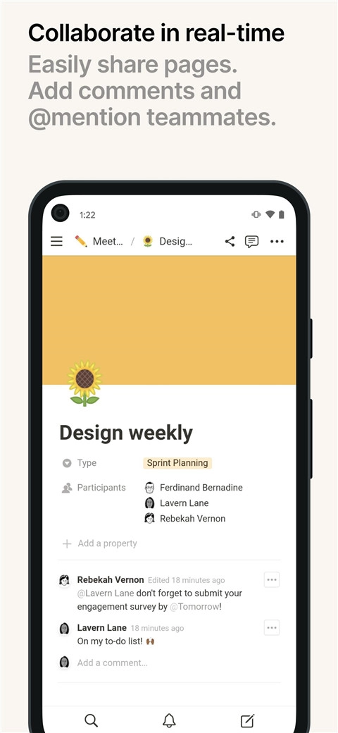 Notion能够让页面共享变得简单,还支持添加评论以及通过@提及队友,从而达成实时协作。