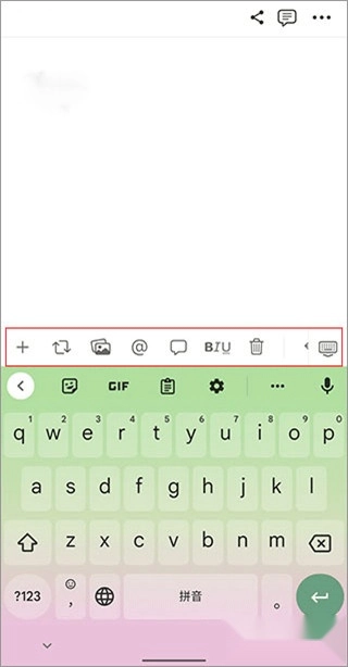 进入编辑界面后,先把标题内容输入好,接着点击下方的文本区域,就能看到输入法上方弹出工具栏了。