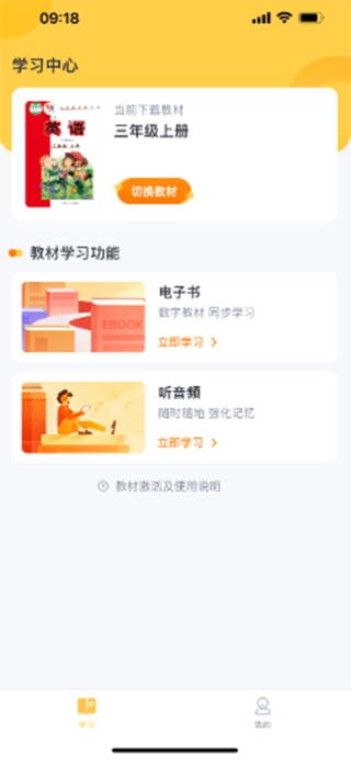 在“学习”界面点击“激活教材”,就能进入资源激活引导流程;这里有两种资源激活方式可供选择,您只需任选其一操作即可。