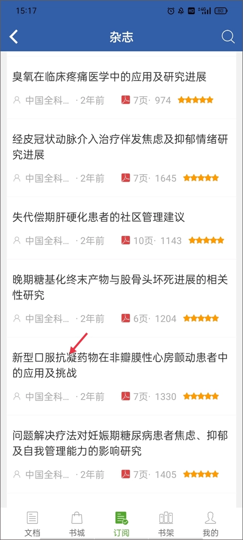 4、将你自己喜欢的文章收藏好后,就可以切换到【书架】进行查看,要注意的是:收藏好的文章一般都是在书架这个界面上阅读的。