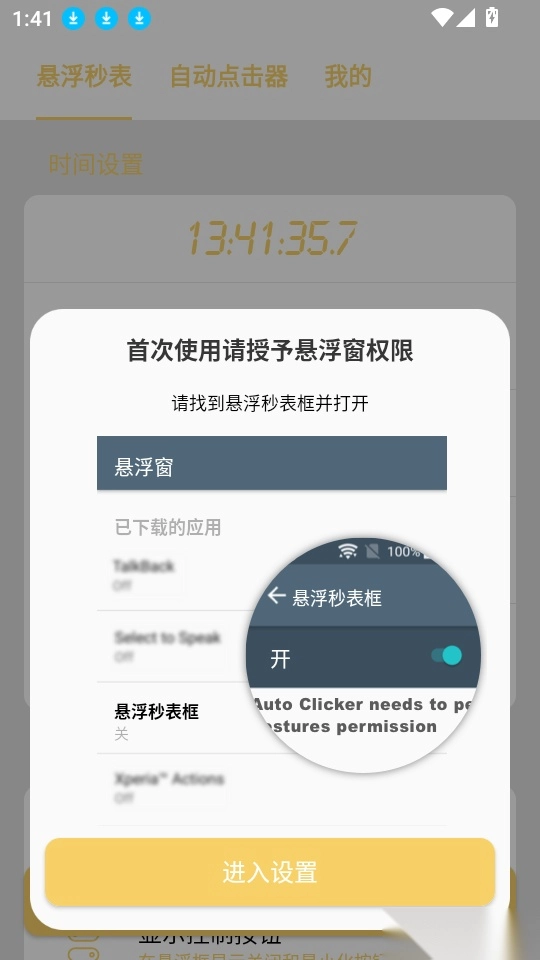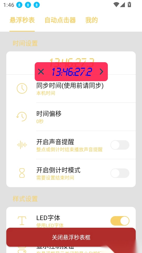 这样就能顺利开启悬浮秒表框,在任意界面显示了。