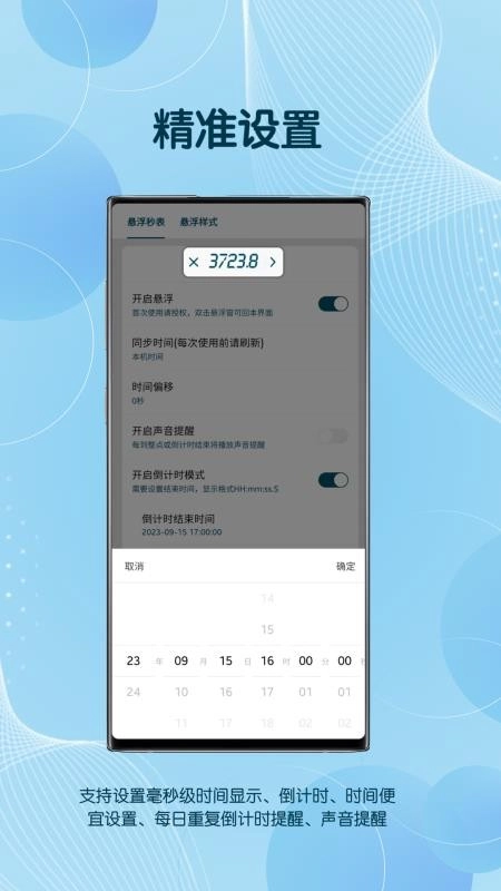 你可以实时展示所需的悬浮时间,轻松实现手机桌面悬浮并清晰呈现。