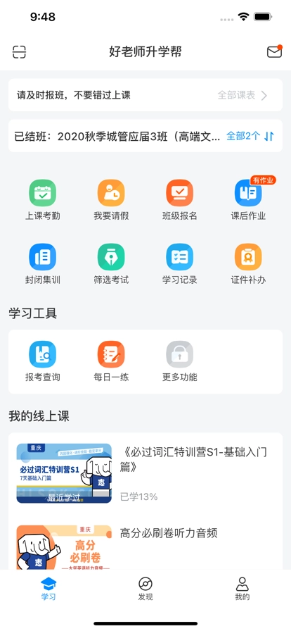 一键搞定报名注册流程,随时接收课表更新提醒,搭配智能考勤打卡功能,助您轻松高效管理学习事务。