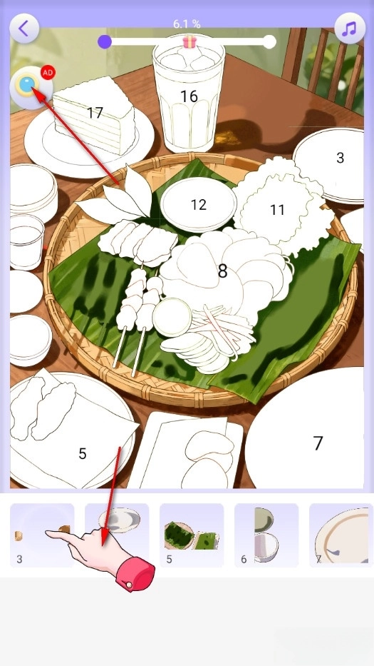 【拼图玩法】玩家需借助拼贴色彩贴片来完成一幅幅艺术作品,这一过程既考验耐心,又能激发创意。