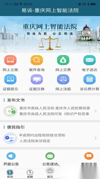 重庆易法院是专为重庆地区打造的线上法律服务平台,市民借助该平台既能查询案件的实时进展,也能办理各类法律服务事项。平台的操作流程设计得清晰明了且公开透明,让市民能够轻松顺畅地完成各项司法相关事务,从而切实提高了诉讼服务的便捷程度和办理效率。