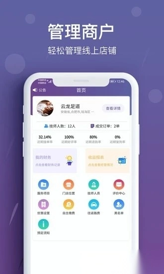 花都商户端是一款聚焦按摩行业的移动管理应用,整合了丰富的办公功能,助力商家高效应对日常运营工作。这款工具能有效加快工作处理效率,方便用户管理后台订单和店铺信息,适合对响应速度有要求的按摩门店,感兴趣的可在本站获取。