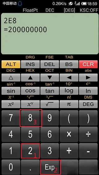 输入用科学计数法表示的数值时,比如像2×10^8这样的例子,操作步骤是先输入数字2,接着按下Exp键,之后再输入数字8。