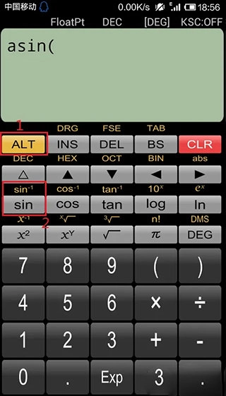 比如计算反正弦(arcsin)时:先按下黄色的[ALT]键,接着按黄色字体sin⁻¹对应的按键,此时显示屏会显示asin(,之后只需输入具体数值就行。