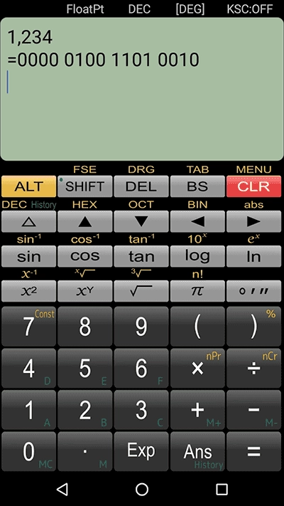其他功能就不逐一说明了,简单来讲,带有黄色字体标识的运算操作,需要先按下[ALT]键,之后再按对应的按键。