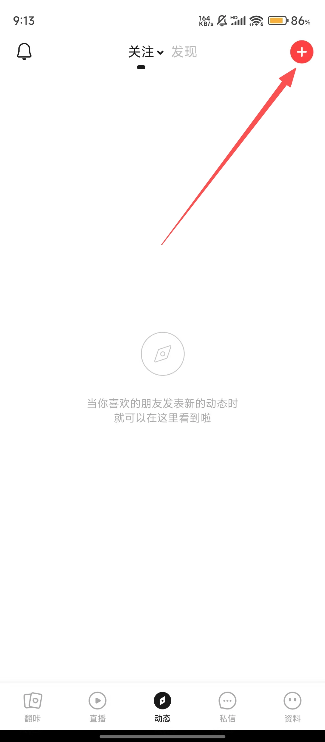 进入【动态】页面后,直接点击右上角的【+】按钮,即可开启你的动态创作之旅。