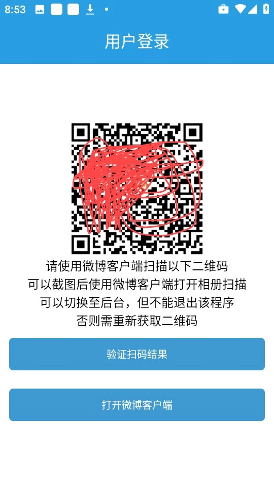 注意事项:截图后可通过微博客户端打开相册扫描;允许切换至后台,但切勿退出程序,否则需重新获取二维码。