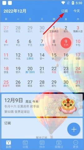 日历版块右上角有个简洁的订阅按钮,只需轻轻一点,就能体验极致便捷!