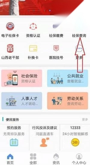 4、注册登录完毕,回到主页,点击社保查询进入;