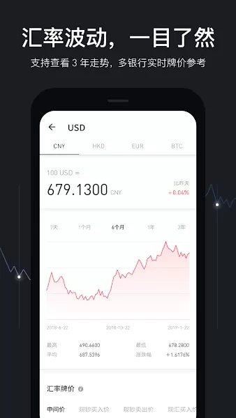 1、软件提供了的详细的汇率走势图,汇率走势图,帮你分析货币价值。