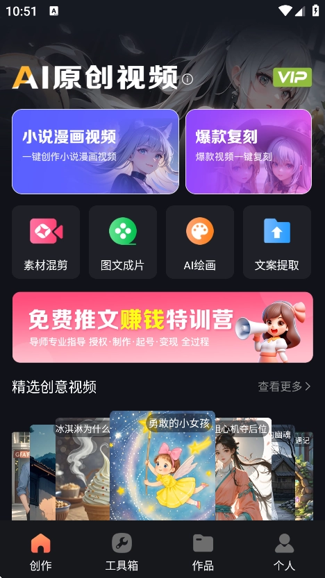AI原创视频是一款借助AI技术打造的智能创作工具。当用户输入文字描述后,软件能迅速领会需求,自动匹配素材、规划分镜并完成视频生成;丰富的风格模板可适配多种场景,支持一键使用,并且配备个性化编辑功能,无论是新手还是创作者,都能轻松制作出专属的优质视频。