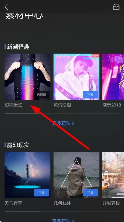 3、找到新潮怪趣分类下的幻视迷虹素材并点击,进入该素材的详情页面。